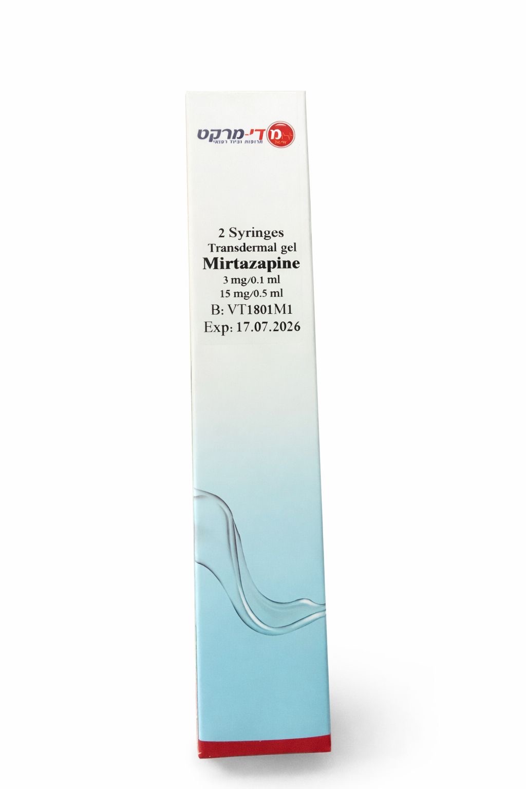 מירטזפין-ג'ל טרנסדרמלי( 3 מ״ג/0.1 מ״ל) 2 מזרקים בנפח 0.5 מ"ל כ"א